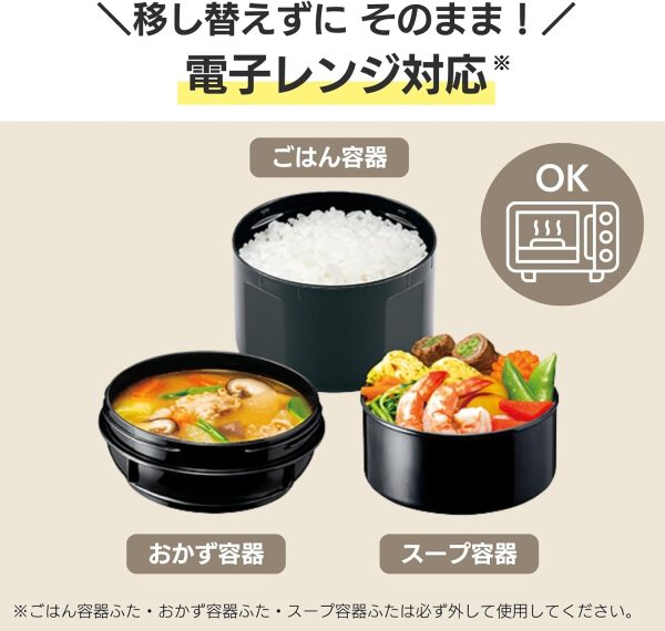 Các hộp bên trong có thể dùng trong lò vi sóng (không dùng phần thân giữ nhiệt), giúp bạn linh hoạt hâm nóng khi cần.