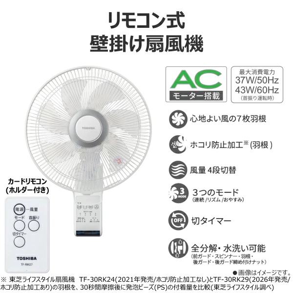 Quạt Treo Tường Toshiba TF-30RK29 – Model Mới Nhất 2026, 7 Cánh Gió Êm, Điều Khiển Từ Xa